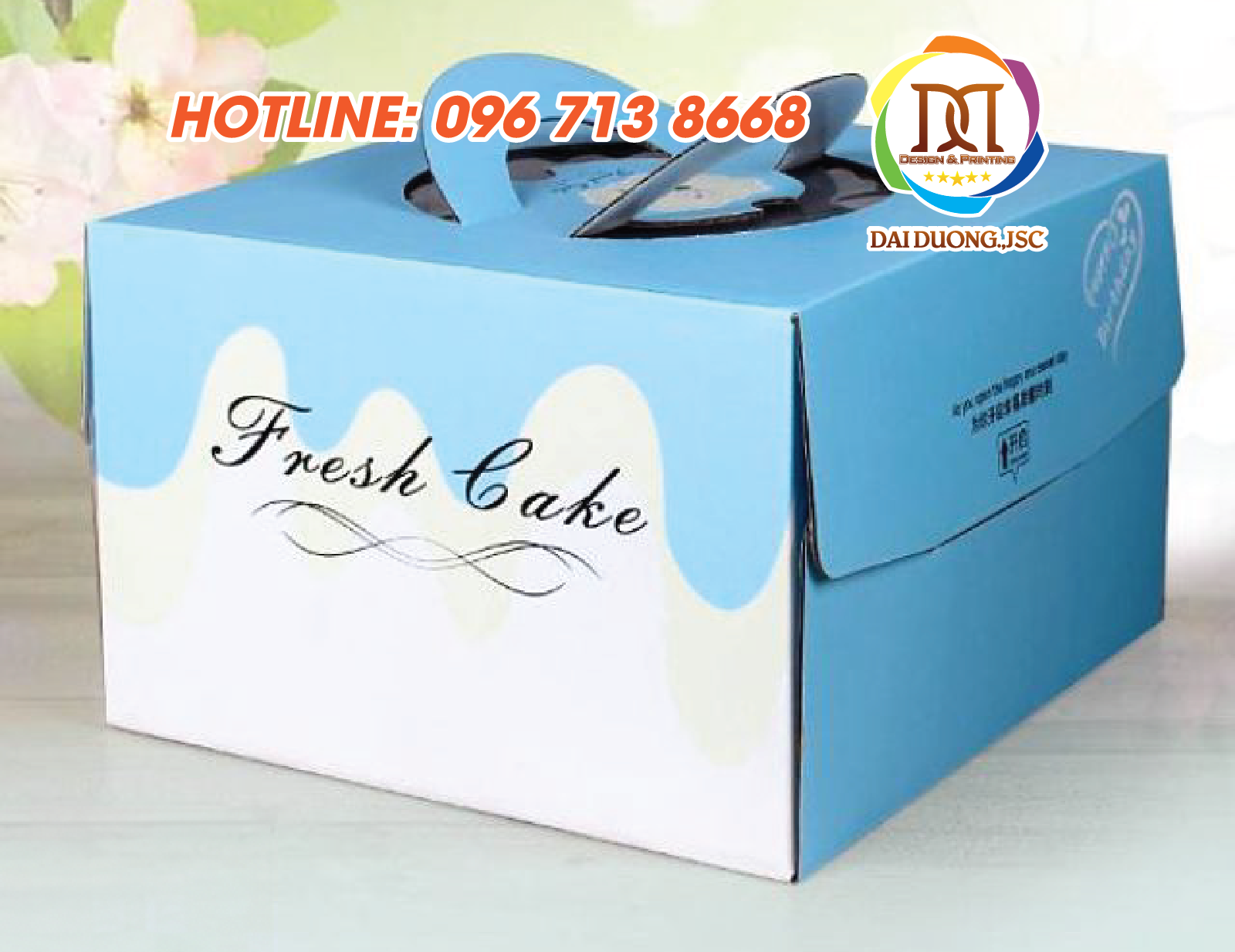 Tại xưởng in hộp bánh sinh nhật của chúng tôi, những thông tin bạn cung cấp như tên cửa hàng, logo, địa chỉ, số điện thoại hay kênh liên hệ online… đều được thiết kế chuyên nghiệp, in ấn rõ nét trên từng chiếc hộp. Kết hợp cùng hình ảnh bắt mắt, màu sắc ấn tượng, chiếc hộp không chỉ đơn thuần dùng để bảo quản bánh an toàn khi vận chuyển, mà còn trở thành công cụ quảng cáo di động đến tay hàng trăm khách hàng tiềm năng.