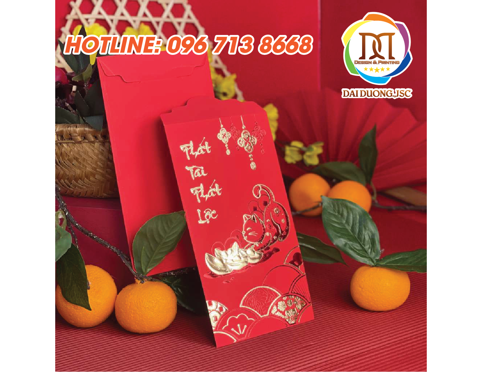 Ngoài ra, có thể làm nổi bật hơn bằng cách ép kim. Dập nổi các hình ảnh, hoa văn làm việc in lì xì tết độc đáo, mới lạ. Kết thúc năm cũ, chào đón cái mới lạ, mỗi người trong chúng ta. Đều muốn gửi đến những người thân xung quanh mình những lời chúc tốt đẹp nhất. Tục mừng tuổi đầu năm được truyền từ đời này sang đời khác. Được các thế hệ sau giữ gìn và phát triển.