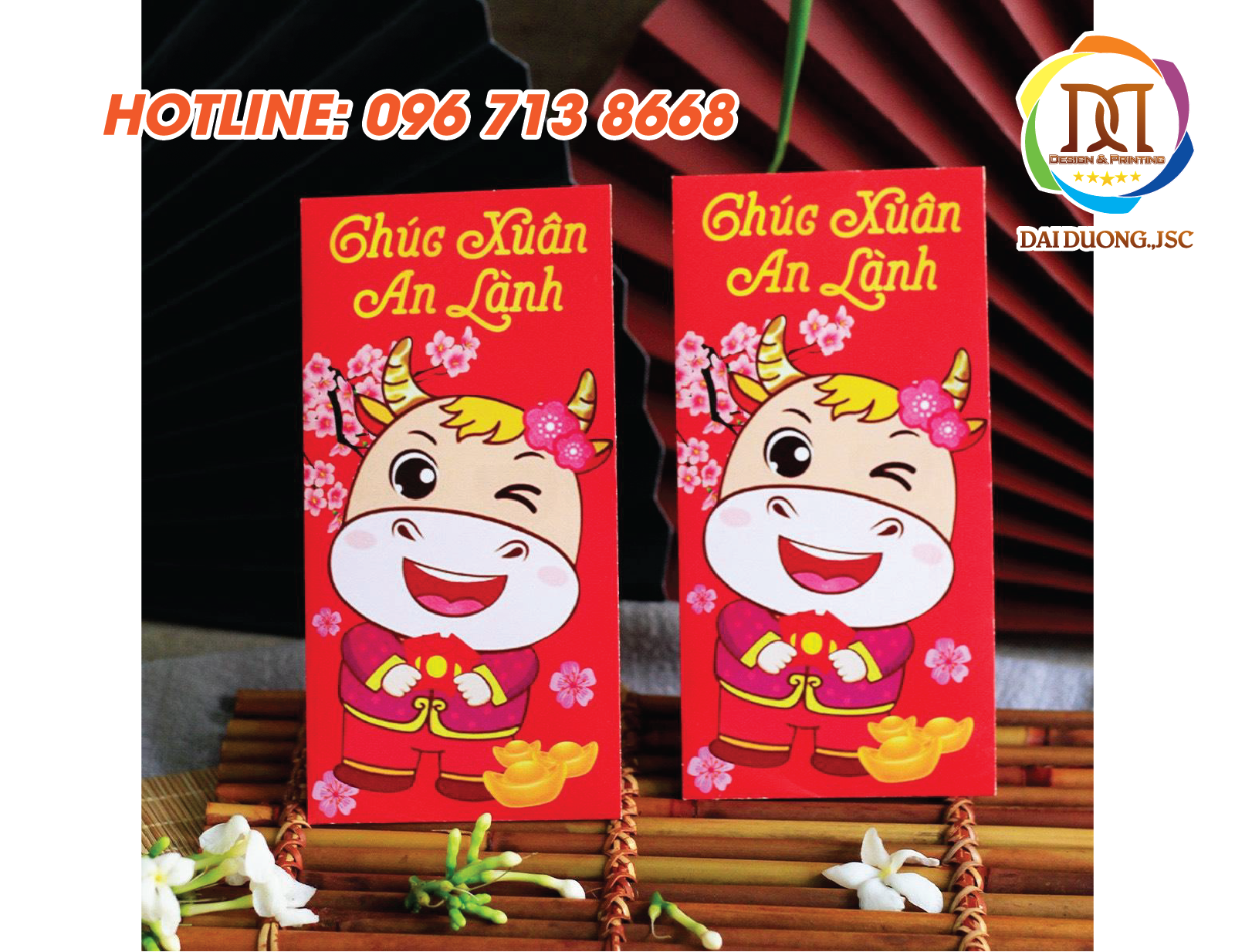 Một phong bao lì xì sẽ mang lại may mắn cho cả một năm mới của bạn. in lì xì tết không chỉ được dung vào mồng 1 Tết mà còn được dùng trong cả 3 ngày tết thậm chí có thể kéo dài hơn, với ý nghĩa xóa tan đi mọi sự buồn phiền, mệt nhọc trong cả một năm làm việc và mở ra một năm mới tràn ngập niềm vui và may mắn.