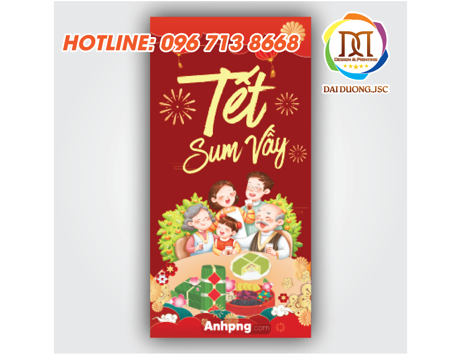 Còn chủ đề về gia đình cũng nhiều ý tưởng không kém. Có thể là hình ảnh cả nhà quay quay bên mâm cơm Tất niên. Hình ảnh gói bánh chưng, hình ảnh mâm ngũ quả ngày Tết,… Dù là những hình ảnh gì đi chăng nữa. Thì in lì xì tết vẫn mang lại cho ta một không khí đầm ấm, sum vầy của ngày Tết cổ truyền. Hoặc đơn giản hơn là hình ảnh của các ông Phúc – Lộc – Thọ biểu tượng cho phúc lộc đầy nhà, an khang thịnh vượng.