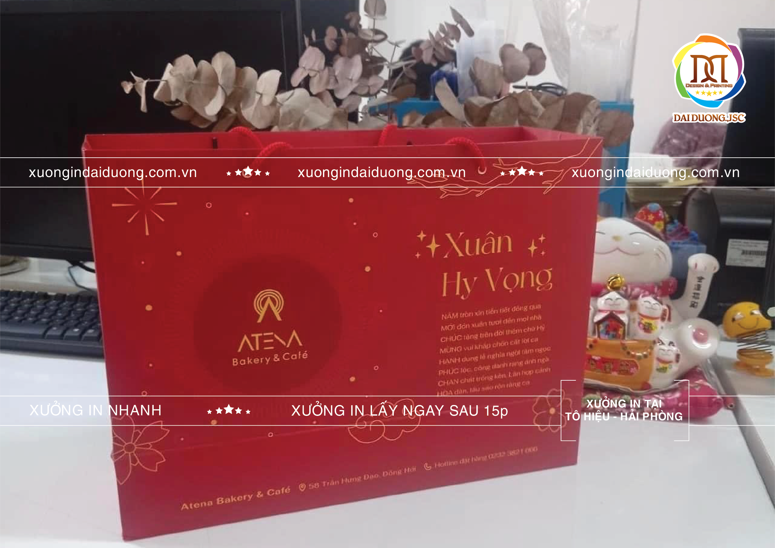 Một chiếc túi quà được thiết kế tinh tế, chọn màu chuẩn Tết và in ấn sắc nét không chỉ làm nổi bật món quà bên trong, mà còn giúp doanh nghiệp truyền tải sự sang trọng và chỉn chu ngay từ cái nhìn đầu tiên.